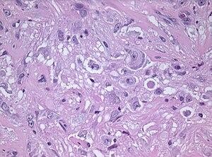 Figure 6: Histopathological image showing large neuronal cells and hyperchromatic nuclei (Sourced from Department of Pathology, NIMHANS Bangalore).