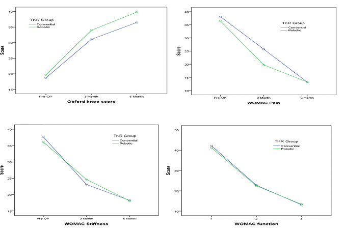 The PROMs that is, WOMAC score [11] and OKS [12], were collected for all patients pre- and post-operatively at 3 months and 6 months. The WOMAC score is a standardized questionnaire used to evaluate pain, stiffness, and physical function in patients with knee osteoarthritis. Higher scores indicate worse symptoms and greater disability.