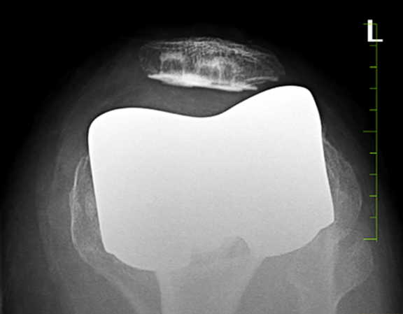 Figure 4: Excessive lateral tilt in the patella is probably secondary to increased internal rotation of the femoral component.