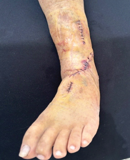 The patient had an uneventful immediate post-operative course. However, on the 23rd post-operative day, he presented with a pulsatile swelling in the anterolateral region of the ankle (Fig. 2).