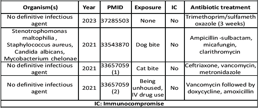 Table 3: Polymicrobial extensor tenosynovitis or no definitive infectious agent