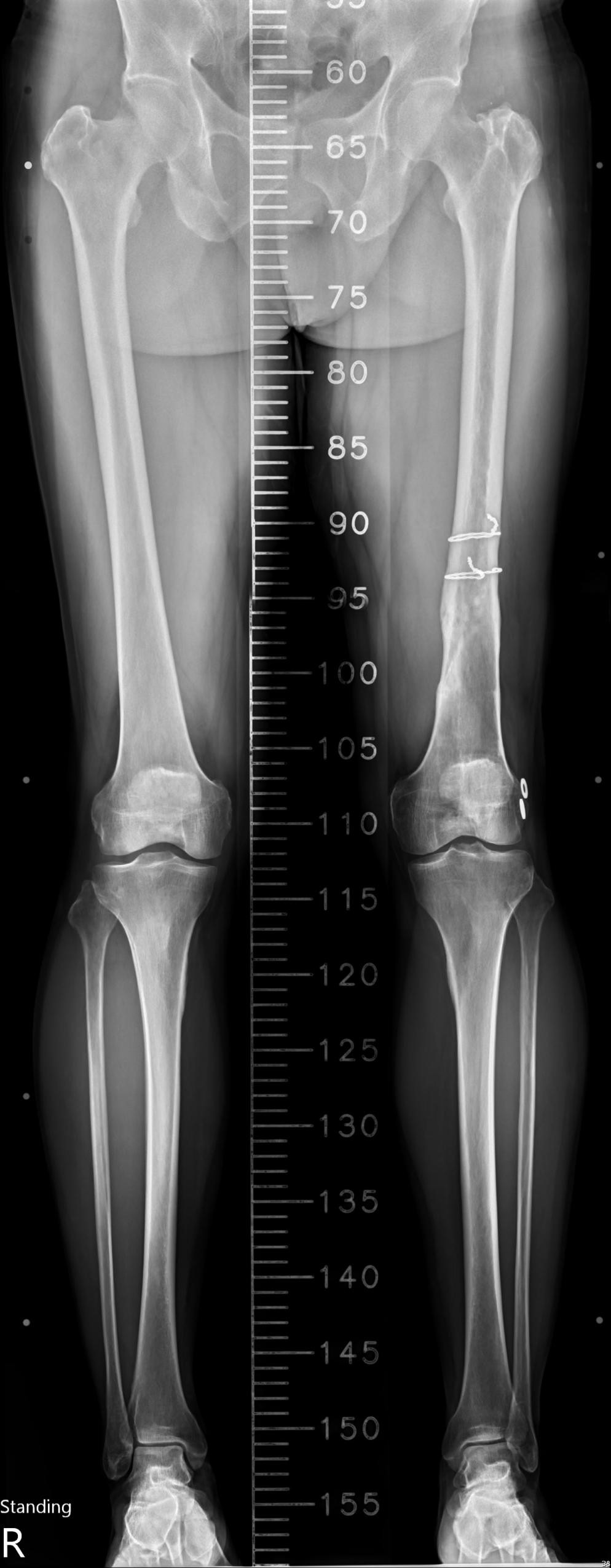 Figure 1: Full-length frontal radiographs of both lower extremities show no significant mechanical axis deviation.