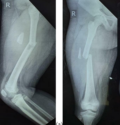 Figure 2: (a and b) Pre-operative anteroposterior and lateral radiographs.