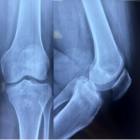 A 48-year-old male presented to the emergency department following a motor vehicle accident with complaints of severe pain, swelling, and inability to bear weight on his left lower limb. On examination, there was significant swelling around the knee joint with marked tenderness over the medial femoral condyle. The patient was unable to perform active knee flexion or extension. Distal neurovascularity was intact. Initial radiographs revealed a coronal plane fracture of the medial femoral condyle, consistent with a Hoffa fracture. In addition, a displaced PCL avulsion fracture was seen (Fig. 1).