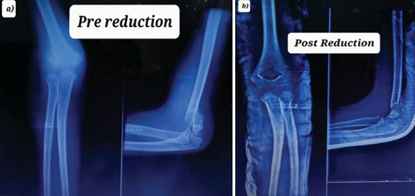 Figure 5: X-rays (a) Pre reduction, (b) Post reduction.