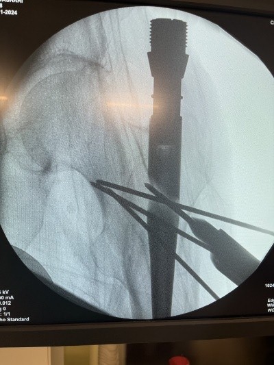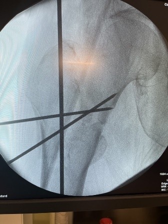 Figure 7: Left hip. Open reduction and K-wires.