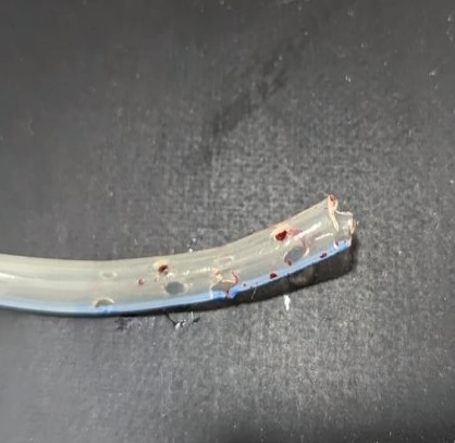 In Case 1, the drain was likely unintentionally sutured, leading to breakage at the weakened junction. Although free gliding movement was ensured before closure, the drain may have been kinked at some level, creating a false sensation of smooth movement. During removal, repositioning the knee to flexion was attempted with moderate, constant force. Extreme force or jerky movements should be avoided. If a patient complains of pain during drain traction, it should be handled carefully, as the drain may be entrapped between anatomical structures.