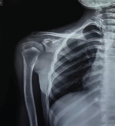 Histopathological examination confirmed benign osteochondroma. Post-operatively, the patient had significant improvement in shoulder mobility, with complete wound healing and no recurrence on follow-up examination and imaging(Figs. 5 and 6).