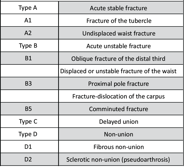Table 2: Classification of scaphoid fracture as per Herbert and Fisher classification [2]