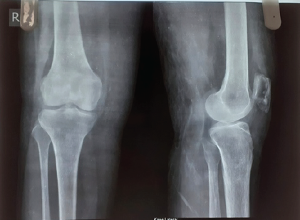 Conclusion: This case illustrates a rare presentation of infrapatellar osteochondroma in an elderly patient, highlighting that such lesions, though uncommon in older adults, should remain a differential consideration in cases of unexplained knee pain with mechanical symptoms. Timely diagnosis through appropriate imaging and surgical excision can lead to excellent symptomatic relief and functional recovery, even in atypical anatomical locations.