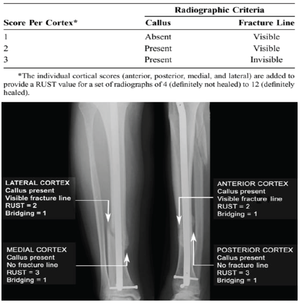 Figure 2: Overview of the radiographic union score for tibial fractures score [6].