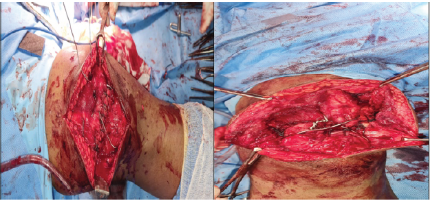Figure 5: Intraoperative image after repair using Ethibond and strengthening with stainless steel wire.