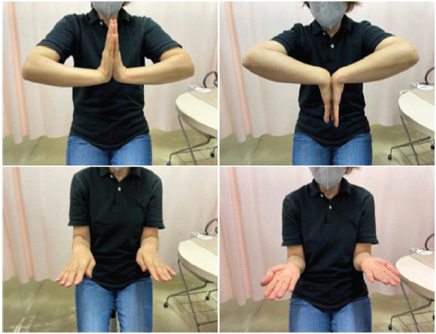 Figure 5: Clinical photographs obtained at 12 months demonstrate wrist extension (85°), wrist flexion (75°), and full forearm rotation (pronation and supination).