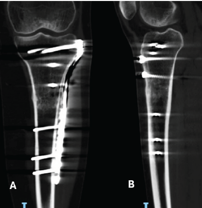 Conclusion: Proximal tibial stress fractures post-TTO are rare but require early recognition and intervention. This case highlights the caution required in rehabilitation and the necessity of surgical intervention as a viable treatment to ensure proper fracture healing and successful recovery.