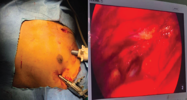 Figure 3: Video-assisted thoracoscopy through 3 portals.