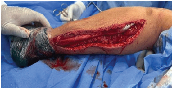 Step 2: Fibular dissection: A lateral incision was made, and the peroneal fascia was incised (Fig. 3).