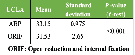 Table 2:UCLA scoring in this study
