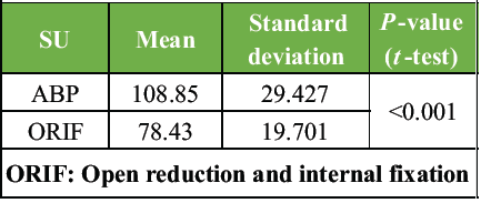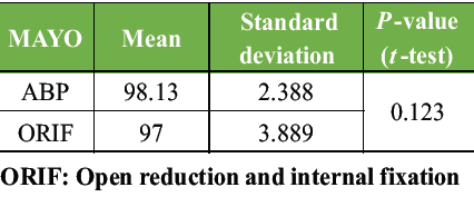 The demographic and fracture characteristics of the two treatment groups were compared using the Chi-square test.Operative time and the use of the Student’s t-test and complications using Fisher’s exact test.