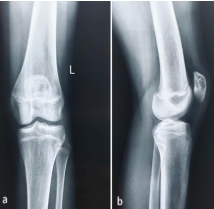 Conclusion: CB with secondary ABC represents a diagnostic challenge due to atypical imaging features that mimic primary ABC. One must maintain high suspicion for this entity when evaluating lytic patellar lesions. Adequate tissue sampling and histopathological examination are mandatory for accurate diagnosis, as radiological findings alone are insufficient. Appropriate surgical management with intralesional curettage and bone grafting results in excellent functional recovery and low recurrence rates.