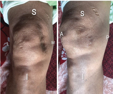 The post-operative period was uneventful, and the patient experienced complete relief of pain and tenderness. At six months follow-up, there was no recurrence, and full knee function was restored (Fig. 5).