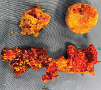 Figure 3: Intraoperative photograph showing tumor tissue and femoral head with defect. This image was taken in the intraoperative period, following the surgical procedure in the operation theater.