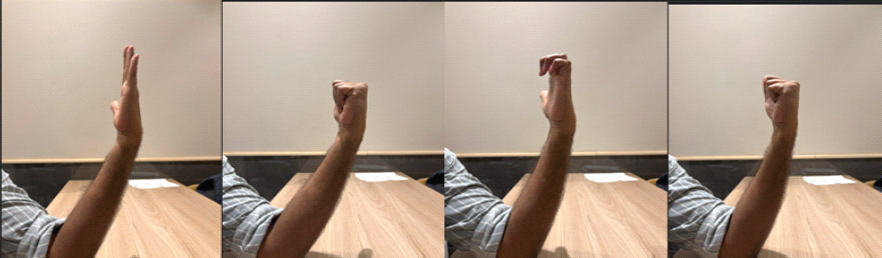 5. Begin submaximal isometric muscle contractions for wrist flexors and extensors
