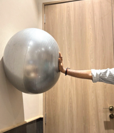 13. Proprioceptive training with the vestibular ball for improving motor control and joint compression on the upper extremity (Fig. 6)