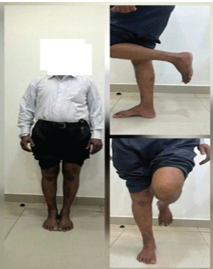 Ipsilateral fibular graft is harvested with its medullary canal reamed to stimulate medullary blood flow. It was contoured into triflanged shape and inserted into the fracture site of tibia. The distal tibial locking compression plate (LCP) was fixed back proximally with new screws. Post-operative period was uneventful. At 3 months follow-up, callus response was observed (Fig. 4). At subsequent follow-ups at 5 months and 9 months, it was observed that the fracture is progressing to union. At 10 months, the fracture united completely (Fig. 5) and the patient was walking without any support (Fig. 6).