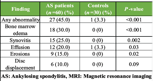 Table 2: MRI findings in AS patients versus controls