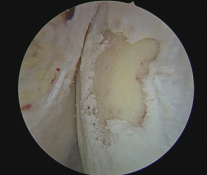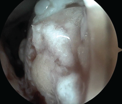 Figure 2: Arthroscopic image showing cartilage defect on the medial femoral condyle.