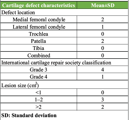 - 8. Dasari SP, Jawanda H, Mameri ES, Fortier LM, Polce EM, Kerzner B, et al. Single-stage autologous cartilage repair results in positive patient-reported outcomes for chondral lesions of the knee: A systematic review. J ISAKOS 2023;8:372-80. [Google Scholar] [PubMed]