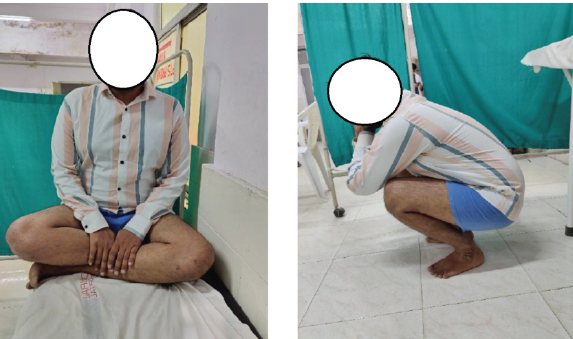 Figure 5: Patient performing squatting and sitting cross-legged at 6-months post-operatively.