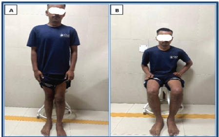 Figure 5: Functional status of the patient at 2 months post-arthroscopy. Standing (a). Sitting (b).