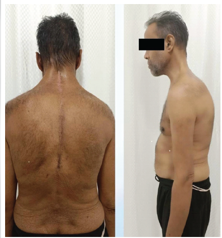 At 2-year follow-up, the correction was maintained with no implant failure, pseudoarthrosis, or neurological deterioration (Fig. 4). The patient remained independent in activities of daily living and reported sustained improvement in quality of life.