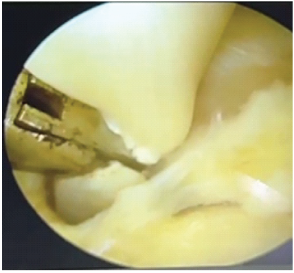 Figure 5: endoscopic tenotomy of the flexor hallucis longus tendon.