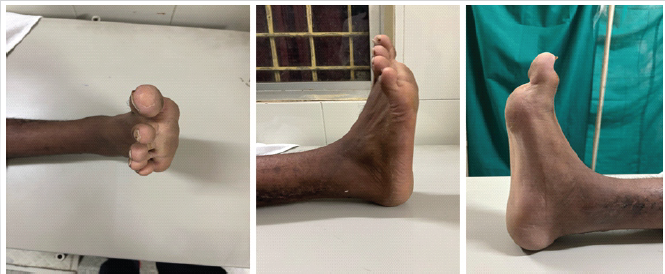 Figure 1: Preo-perative image showing checkrein deformity of the toes.