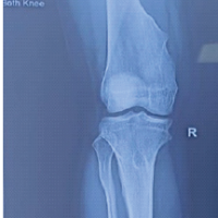 A 32-year-old male presented with pain in the left knee with stiffness for 1 year following a history of twisting injury to the knee while walking. He gave a history of locking episodes and difficulty in squatting and sitting cross-legged. He was a known case of chronic gout for 3 years on irregular medication. His father was a known case of Gout and was on treatment for 25 years. On examination, the patient had ichthyosis over both legs since childhood and mild effusion over the knee, with lateral joint line tenderness and a flexion deformity of 20°. The knee was stable without laxity, with a range of motion (ROM) from 20° to 70°, which was painful. (Fig. 1).