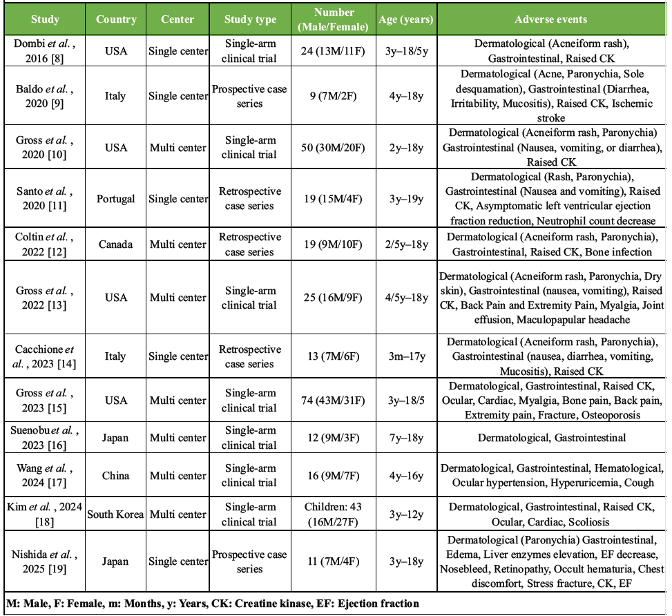 Table 1: Literature review of adverse effects of selumetinib in NF1 patients.