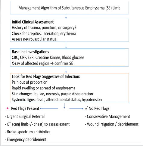 Figure 4: Simplified management algorithm for evaluating subcutaneous emphysema of the limb.