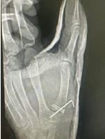 Subcutaneous emphysema is defined by the presence of air within the subcutaneous soft tissue planes and is most commonly encountered in association with thoracic trauma, pneumothorax, or gas-forming infections such as necrotizing fasciitis [1]. However, rare cases have been reported where subcutaneous emphysema occurs following minor trauma or superficial lacerations without thoracic or systemic involvement [2-4]. Scapular fractures account for less than 1% of all fractures and usually occur following high-energy trauma [5]. Most are extra-articular and are treated conservatively. Subcutaneous emphysema is not a recognized complication of scapular fractures; however, when associated with open wounds in the axillary or shoulder region, air may track along fascial planes into the upper limb. We present a rare case of post-traumatic subcutaneous emphysema of the upper extremity associated with an open scapular body fracture following blunt trauma. We also review the existing literature and discuss key diagnostic considerations to differentiate benign emphysema from limb-threatening infections.