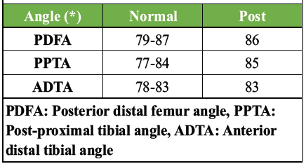 Table 3: Post angle correction using TRAUMACARD software