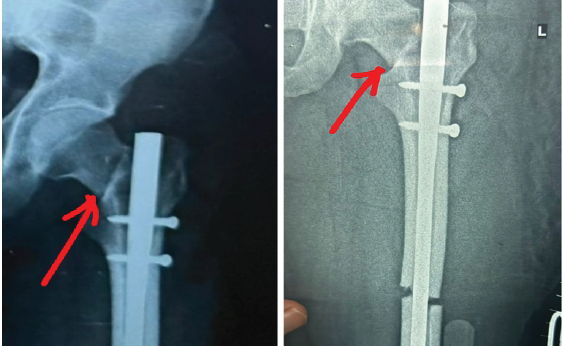 Conclusion: There are many techniques to treat missed iatrogenic neck femur fracture. One such technique is to put miss-a-nail compression screw to achieve good compression at the neck site.