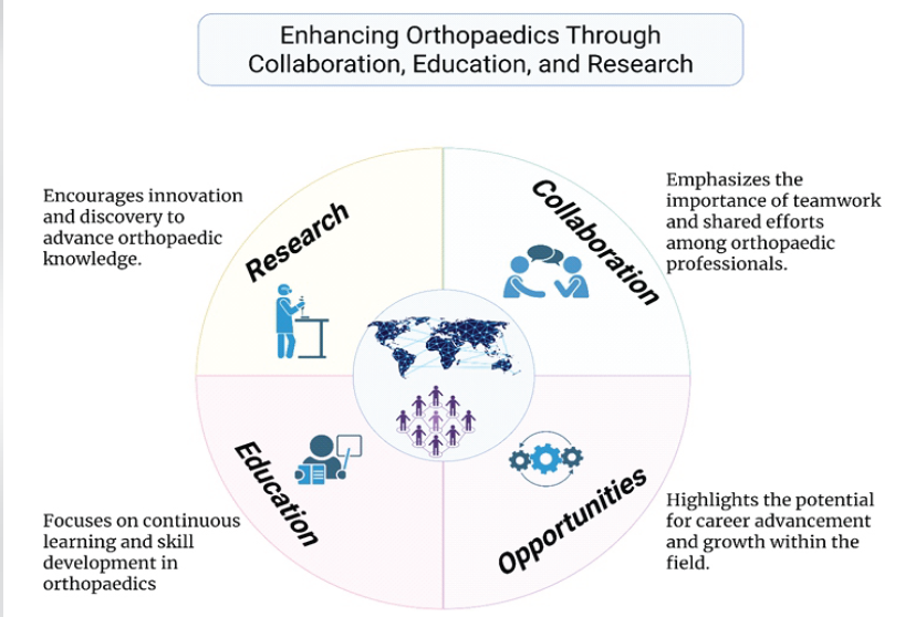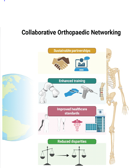 Collaborative networking in orthopedics bridges gaps in education, research, and clinical care across diverse global healthcare infrastructures, fostering inclusivity and innovation.