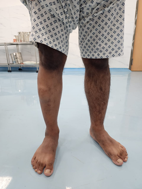 A 22-year-old male presented with a swelling over the anterolateral aspect of the right leg that became prominent on standing and during contraction of the tibialis anterior muscle. The patient complained of intermittent pain during physical activity. There was a history of blunt trauma to the same leg 1 year before presentation. On clinical examination, a soft, reducible bulge was observed over the tibialis anterior region. The swelling appeared at rest and became prominent on ankle dorsiflexion (Fig. 1).