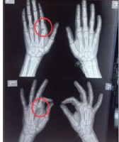 Figure 6: One-year post-operative radiograph showing progression of epiphyseal slip with limb length discrepancy.