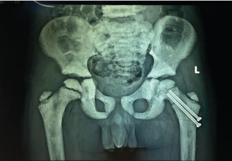 Introduction: Pathological femoral neck fractures are rare but significant injuries in children with osteopetrosis and pose unique management challenges. Optimal treatment strategies remain controversial, particularly in skeletally immature patients with open physes.