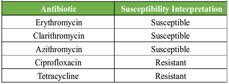 Table 1: The antibiotic susceptibility profile of Campylobacter fetus cultured from intraoperative microbiological samples