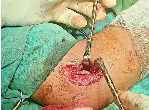 All surgeries were performed under regional anesthesia with the patient in the supine position. Exposure was achieved through a lateral elbow approach, most commonly through the Kocher or Kaplan interval, ensuring preservation of the lateral collateral ligament complex (Fig. 2).