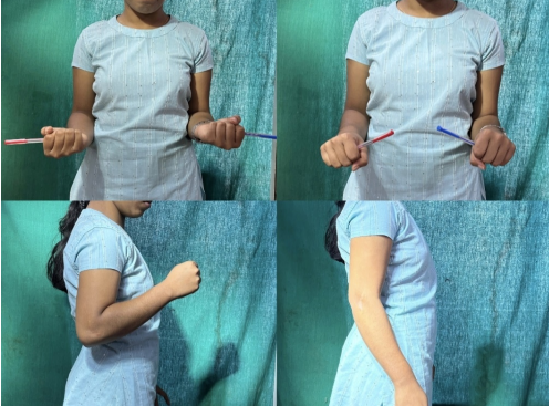 Figure 5: Clinical photograph at 3 months follow-up showing excellent elbow range of movement.