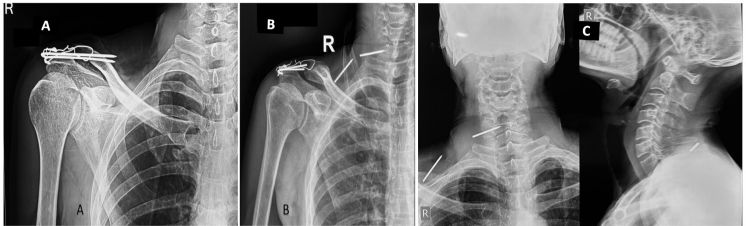 Conclusion: This case underscores the unusual scenario of dual K-wire migration into the cervical region without neurological involvement. It highlights the critical importance of timely hardware removal and cautious use of unthreaded K-wires in mobile joints such as the acromioclavicular joint. Clinicians must be vigilant about potential wire migration, especially in patients with unexplained persistent pain post-surgery. Early detection and multidisciplinary surgical management are key to preventing catastrophic outcomes.